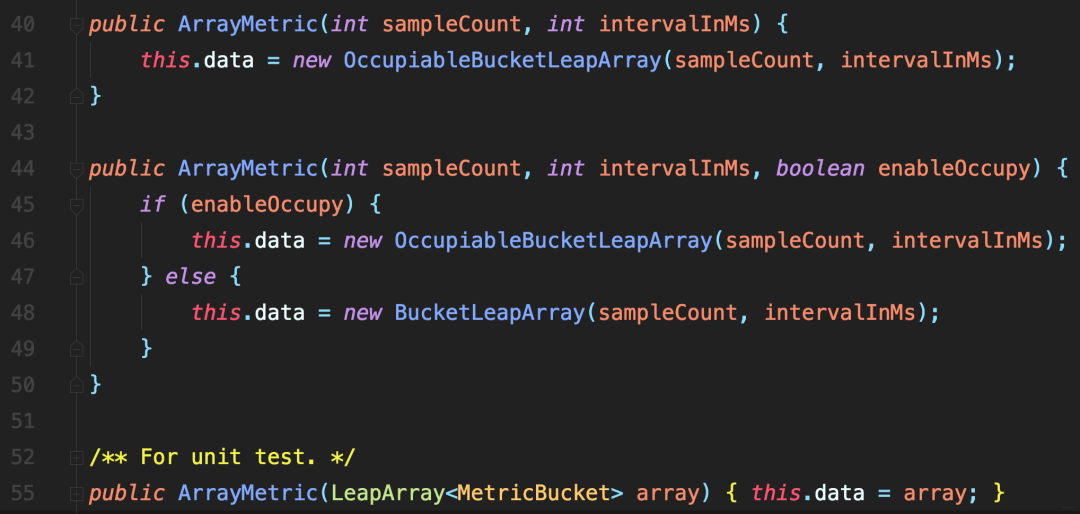 以分钟维度统计的使用来说,使用子类 BucketLeapArray 实现。