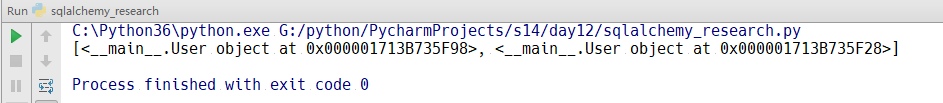插入数据是使用sessionmaker,通过绑定上面创建的连接创建出一个类,生成session实例(相当于之前的cursor),用面向对象的方式创建两条记录,然后添加,最后commit就可以了
