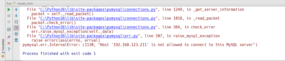 conn = pymysql.connect(host='192.168.123.207',port=3306,user='root',passwd='root',db="test");