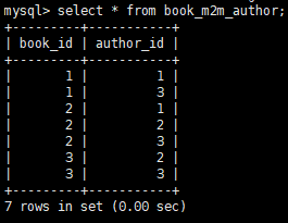 上面红色标记是建立关联关系,这样建立出来之后,book_m2m_author表自动就会有数据。