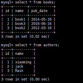但是在mysql端其实已经关联上了,因为外键已经建立好了,在orm查询的时候,还要做一个orm级别的 内存对象的映射:relationship,告诉book表和author表在查询数据的时候去哪张表里查询。