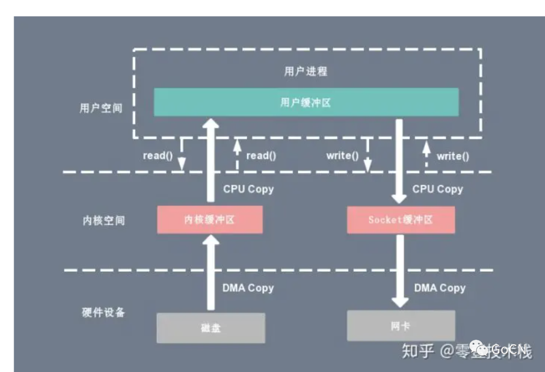 二,cpu 通过控制 dma,将数据从硬件缓冲区 copy 到内核缓冲区。再将内核缓冲区的数据 copy 到用户缓冲区。