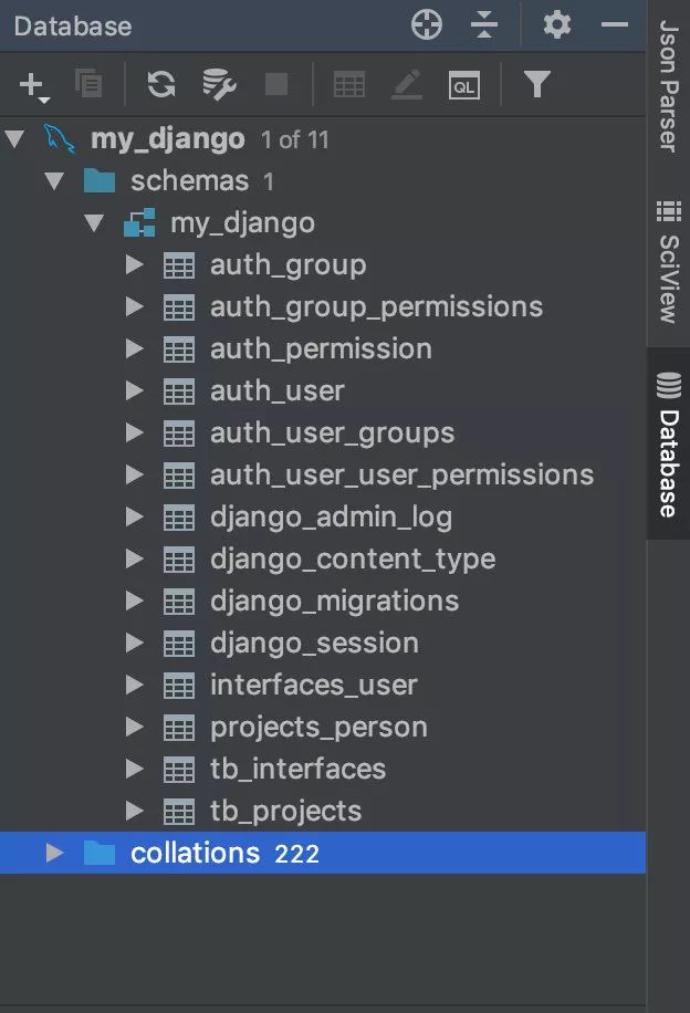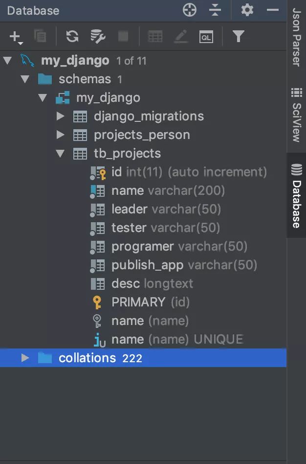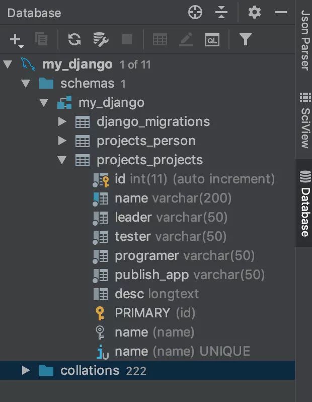 默认创建的数据库名为:应用名小写_数据库模型类小写