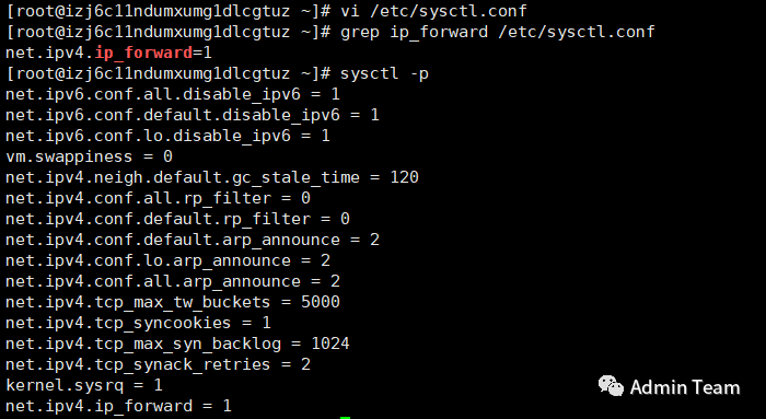 也可通过编辑/etc/sysctl.conf文件来启用ip转发,然后再使用sysctl命令使其生效