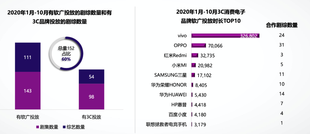 3C类品牌覆盖6成剧综内容,vivo投放力度最大