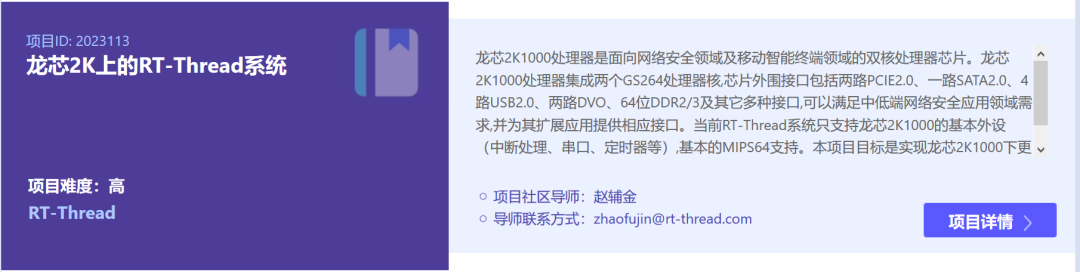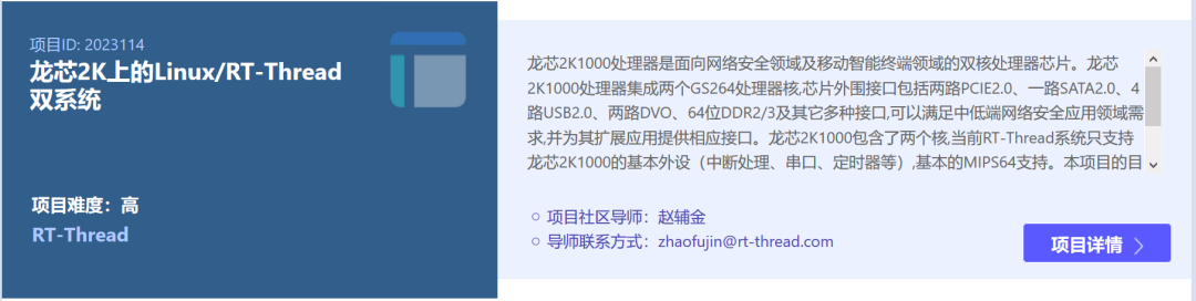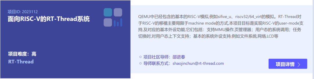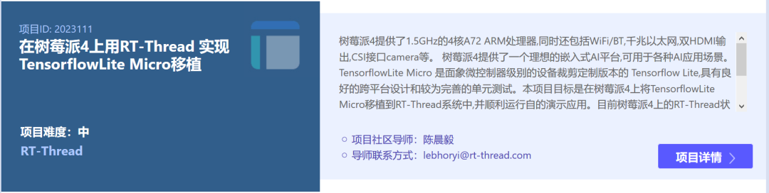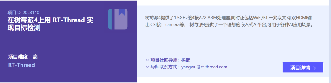 RT-Thread社区共发布了八个项目,点击https://isrc.iscas.ac.cn/summer2020/#/organisations/rt-thread 了解更多关于RT-Thread社区和项目的信息。(以上链接请复制至外部浏览器打开)