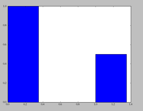 当然,可能你还觉得这两个矩形“太胖”了。此时我们可以通过指定bar的width参数来设置它们的宽度。
