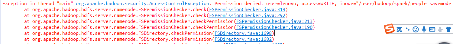 * 保存文件时权限被拒绝 曾经踩过的坑: 保存结果到hdfs上没有写的权限 通过修改权限将文件写入到指定的目录下