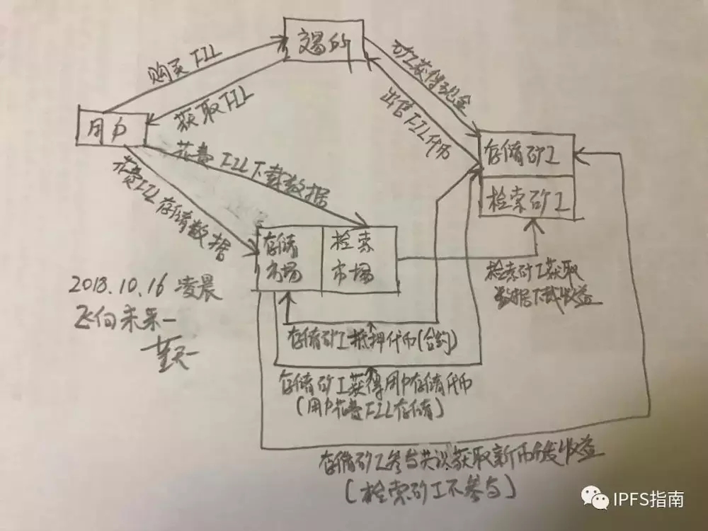Filecoin经济体系价值交换和新币分发,小编画了一张图来说明Filecoin体系里面价值和代币是如何转移的(请忽略小编的长的奇丑无比的字)。