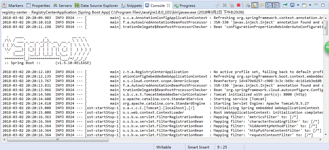 右击ApplicationContextStartart选择Run as -->spring boot App 出现如下信息: