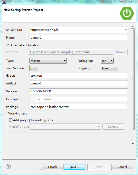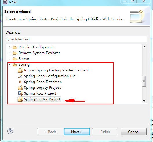 (注意:如果有些小伙伴找不到像我这样的目录 就是有Spring Starter Project 的工程目录,那么是因为你的Eclipse没有安装下载 Eclipse中安装STS插件)