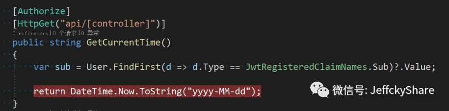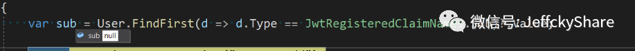 那么如果我们想要获取声明JwtRegisterClaimNames.Sub的值,我们是不是应该如上同样去获取呢?我们来试试。