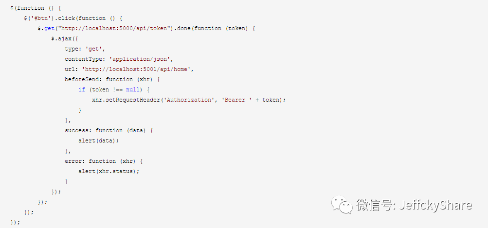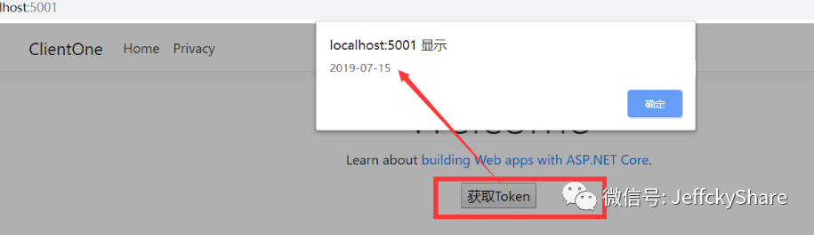 我们在页面上放置一个按钮点击获取端口号为5000的Token后,接下来请求端口号为5001的应用程序,如下: