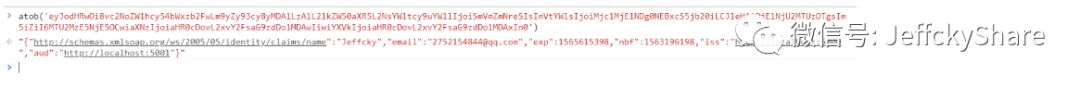 到这里此时我们应该知道:JWT包含的信息并没有加密,比如为了获取Payload,我们大可通过比如谷歌控制台中的APi(atob)对其进行解码,如下: