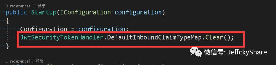 此时我们发现为空没有获取到,这是为何呢?这是因为获取声明的方式默认是走微软定义的一套映射方式,如果我们想要走JWT映射声明,那么我们需要将默认映射方式给移除掉,在对应客户端Startup构造函数中,添加如下代码: