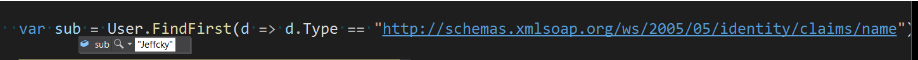 如果用过并熟悉IdentityServer4的童鞋关于这点早已明了,因为在IdentityServer4中映射声明比如用户Id即(sub)是使用的JWT,也就是说使用的JwtRegisteredClaimNames,此时我们再来获取Sub看看。