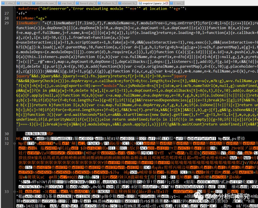 所以实际上这个js文件是嵌入了shellcode,伪装成正常的js文件而已。