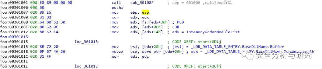 shellcode要实现PIC,上面就是一种方式来调用windows 函数。(后续就跳过这些分析步骤直接标注对应的API)