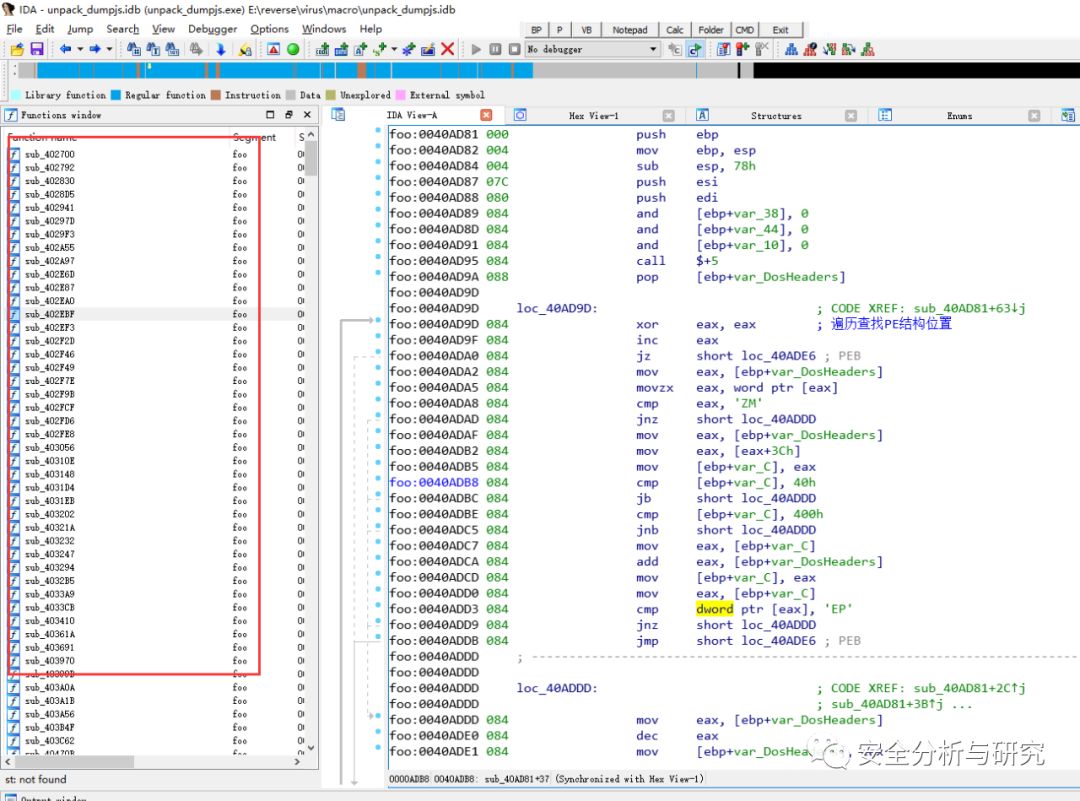 通过OD解密,保存解密后的代码,再使用IDA查看。可以看到解析的函数多出了不少。