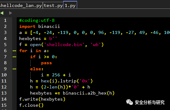 myArray数组内容,如果想进行静态分析,需要转换成二进制存储。这里编写了一个简单的python脚本进行转换。代码如下:
