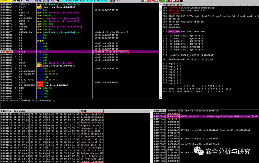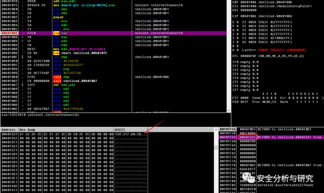 作为还在入门的小白,分析的第一个shellcode,也没啥经验,有些地方可能描述的不太正确,有问题大家指出来。