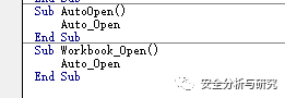 其他两个代码段应该是应用其他情况,比如Workbook_Open是在excel打开工作簿的时候会运行的,里面调用了Auto_Open,而该段代码是存储在word中,所以不生效。