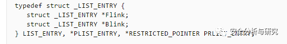 5.LIST_ENTRY实际上是一个双向链表,如InMemoryOrderModuleList的Flink指向下一个模块的_LDR_DATA_TABLE_ENTRY结构体的InMemoryOrderLinks成员,Blink指向上一个模块的_LDR_DATA_TABLE_ENTRY结构体的InMemoryOrderLinks成员。