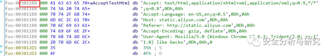 再调用HttpSendRequestA设置HTTP头部并发送请求。