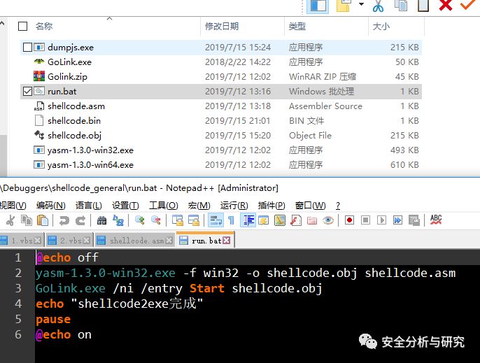 然后通过yasm编译asm,在通过golink链接成exe即可,入口点设置成汇编里的“Start”。