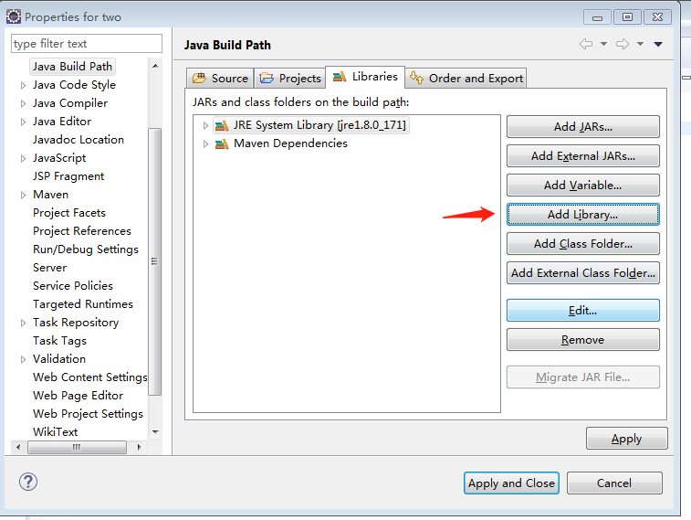 第二步:点击Libraries选项卡,点击Add Library按钮