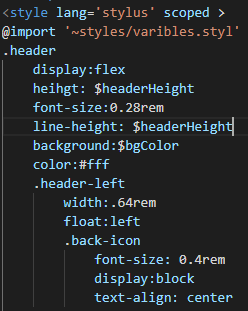 使用的时候要特别注意缩进,因为缩进是页面dom的父子关系或者兄弟关系的体现,如图font-size:0.4rem可以理解为.header类下的.header-left类下的.text-align类