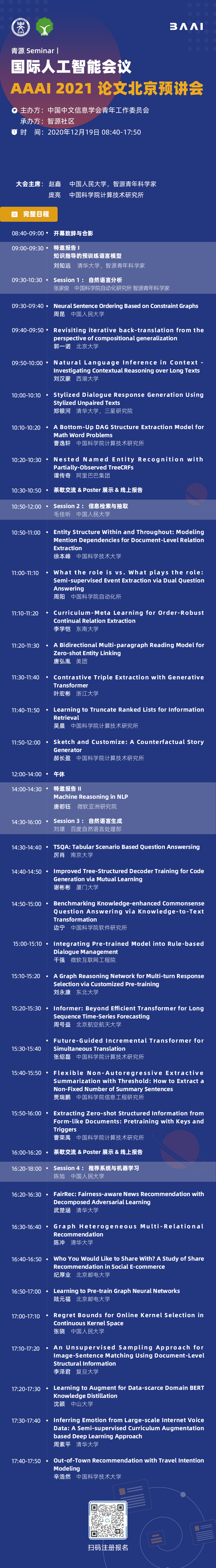 国际人工智能会议AAAI 2021论文北京预讲会由中国中文信息学会青年工作委员会主办、智源社区承办,将于12月19日在北京北大科技园北领讲堂举办。