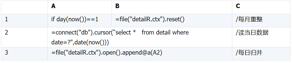 A3:将当日数据有序归并到集算器自动生成的补文件中。