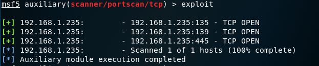 - 在ms08_067中应用use auxiliary/scanner/portscan/tcp搜索靶机开放端口(在ms08_067_netapi:自动化漏洞溢出攻击中有体现)