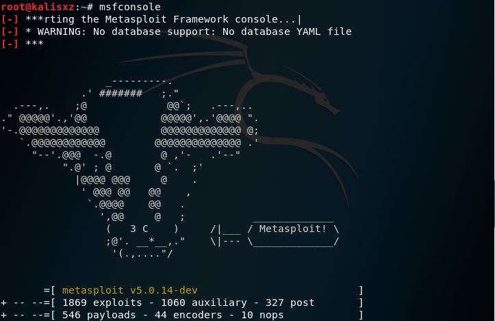 msfconsole 打开控制台,遇到以下提示,原因是没有找到数据库文件