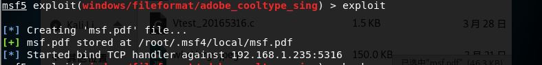 use windows/fileformat/adobe_cooltype_sing //使用漏洞