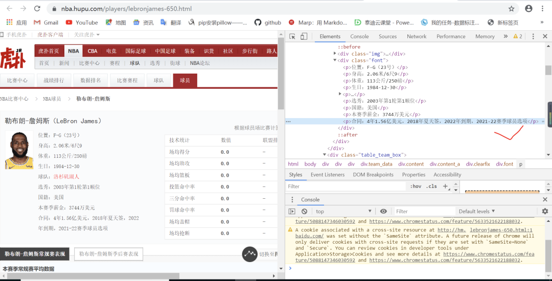 URL3(此处以詹姆斯为例): https://nba.hupu.com/players/lebronjames-650.html