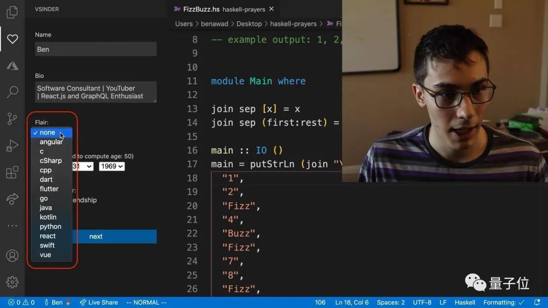 为了用最硬核的方式找到男(女)朋友,23岁的程序员Ben Awad在VS Code里打造一个约会软件VSinder。