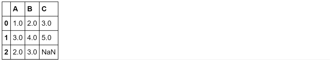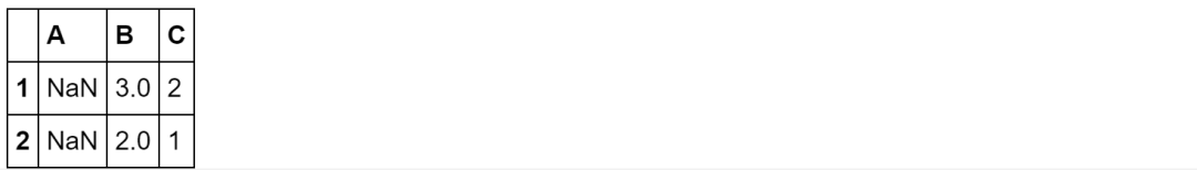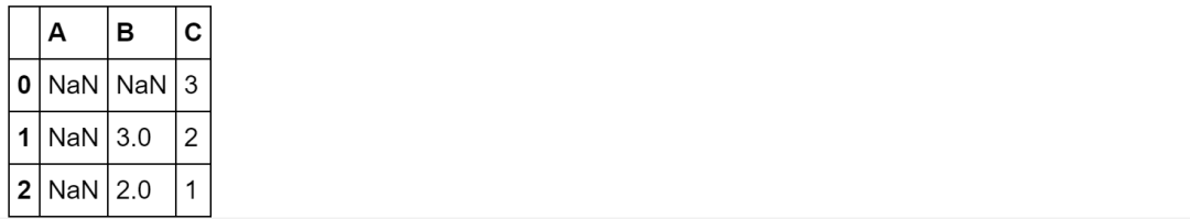 df_d = pd.DataFrame({'A':[np.nan,np.nan,np.nan],'B':[np.nan,3,2],'C':[3,2,1]})df_d