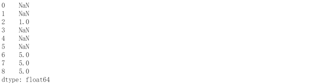 s = pd.Series([np.nan,np.nan,1,np.nan,np.nan,np.nan,5,np.nan,np.nan,])s.interpolate(limit_direction='backward')