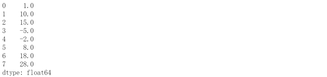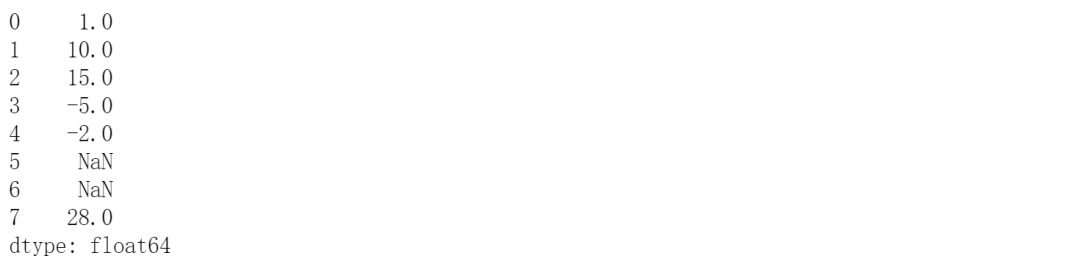s = pd.Series([1,10,15,-5,-2,np.nan,np.nan,28])s