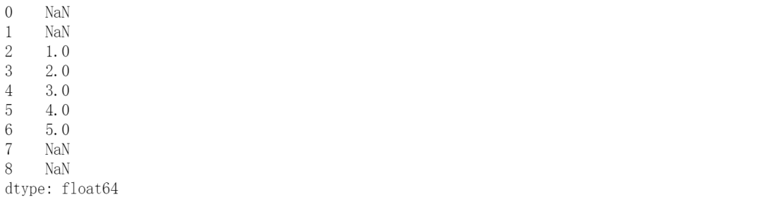 s = pd.Series([np.nan,np.nan,1,np.nan,np.nan,np.nan,5,np.nan,np.nan,])s.interpolate(limit_area='outside')