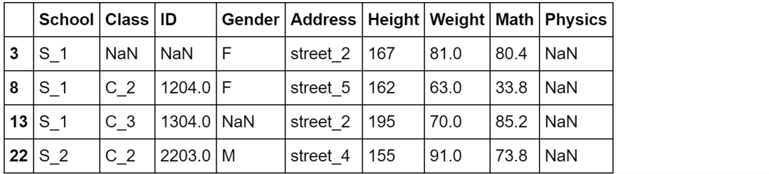 在所有的表格读取后,无论列是存放什么类型的数据,默认的缺失值全为np.nan类型。