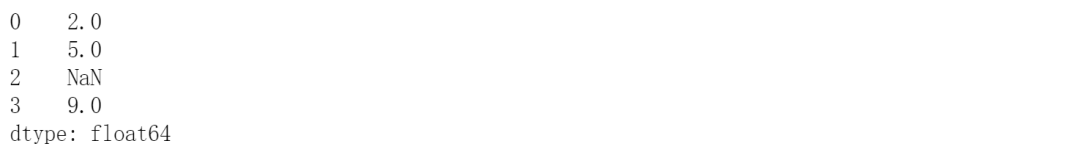 s = pd.Series([2,3,np.nan,4])s.sum()9.0