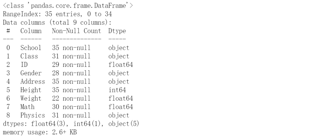 df['ID'].dtypedtype('float64')df['Math'].dtypedtype('float64')df['Class'].dtypedtype('O')2、None