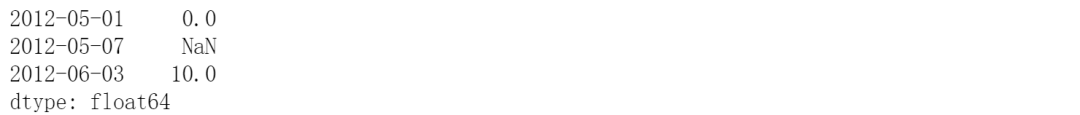 s_t = pd.Series([0,np.nan,10],index=[pd.Timestamp('2012-05-01'),pd.Timestamp('2012-05-07'),pd.Timestamp('2012-06-03')])s_t