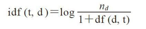 其中tf(t,d)为词频,而逆文档频率idf(t,d)的计算公式为: