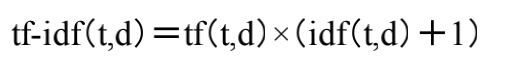 与之前定义的标准tf-idf计算公式不同,sklearn中实现的idg和tf-idf分别为: